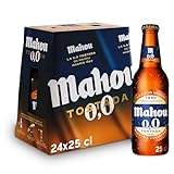 - Mahou 0,0 Tostada en pack de 24 botellas de vidrio de 25 centilitros sin alcohol.